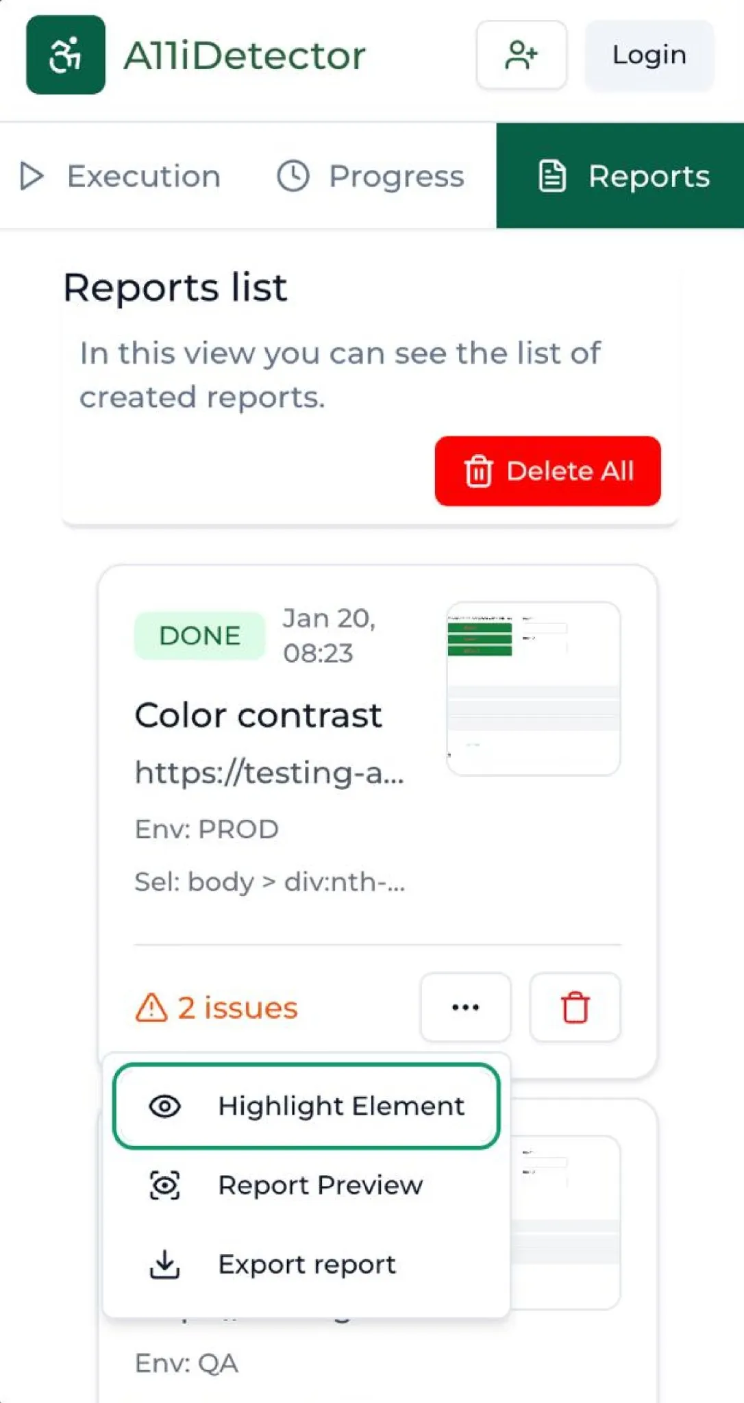 Configure URL, select tests, and run accessibility audits with one click.